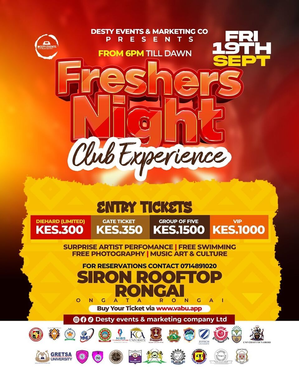 Experience an electrifying start to your academic journey with FRESHERS NIGHT at Siron Place! 🎉 Join fellow freshers for an unforgettable night filled with music, fun, and new connections. The event promises lively performances, engaging activities, and a vibrant atmosphere to kick off the new semester. Whether you're looking to make new friends, enjoy great music, or simply have a fantastic night out, this event is the perfect way to celebrate the beginning of your adventure in Naivasha. Don't miss out on this exciting gathering designed exclusively for freshers eager to make their mark! 🚀✨