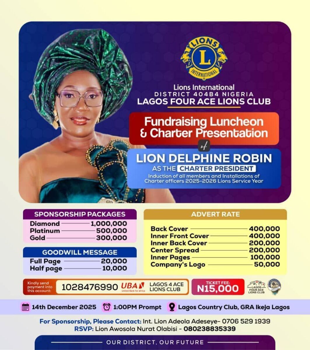 Join us for an inspiring and prestigious event hosted by Lions International District 404B4 Nigeria, Lagos Four Ace Lions Club! ๐