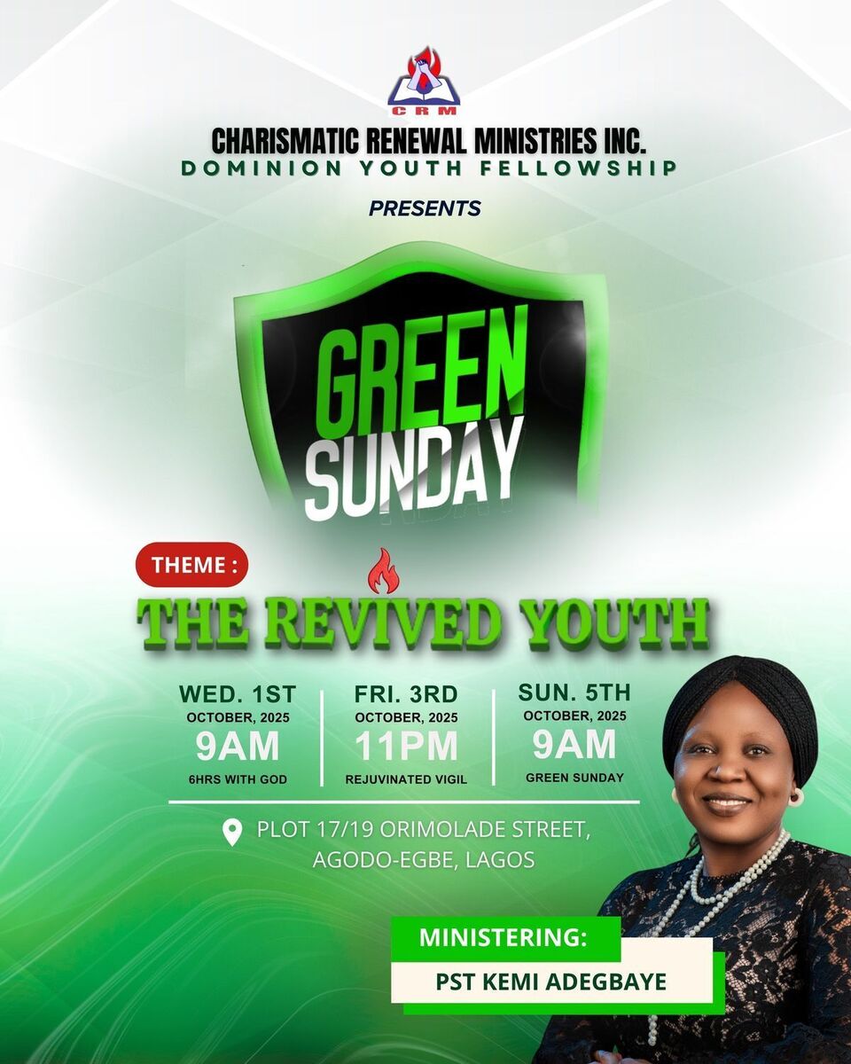 Join us for the highly anticipated Green Sunday 2025 β a powerful annual youth event focused on seeking God through Word, Worship, Prayers, and more! πΏπ₯