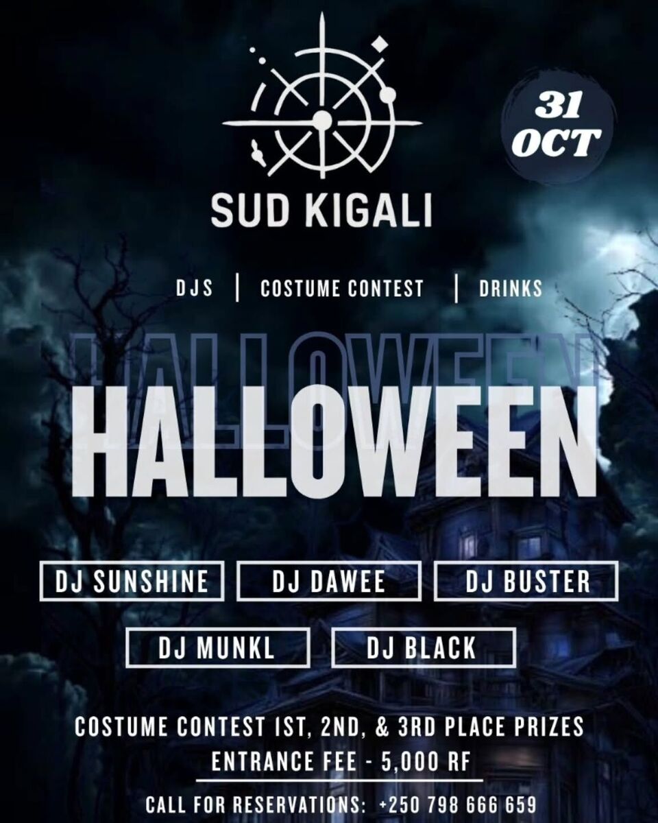 π Get ready for an unforgettable Halloween celebration at SUD Kigali! Dress to impress or to scare β the costume contest is on, with exciting prizes for the top three looks. Join us for a night filled with spooky fun, fantastic costumes, and great vibes. All consumables are available at SUD Kigali, making it the perfect place to enjoy the festivities. Don't miss out on this thrilling event where you can showcase your creativity and enjoy a night of entertainment! π»