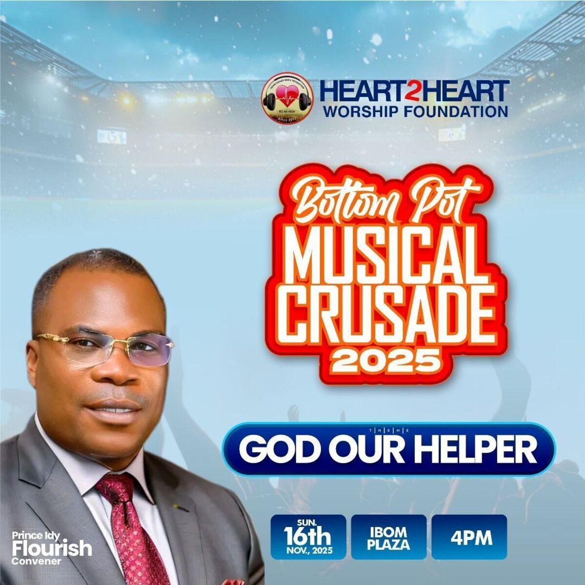 ๐ถ Heart2Heart Music Production presents the vibrant Bottom Pot Musical Crusade 2025 โ an electrifying celebration of faith, music, and community! Join us for an unforgettable evening filled with soul-stirring performances, uplifting themes, and a powerful message of hope.