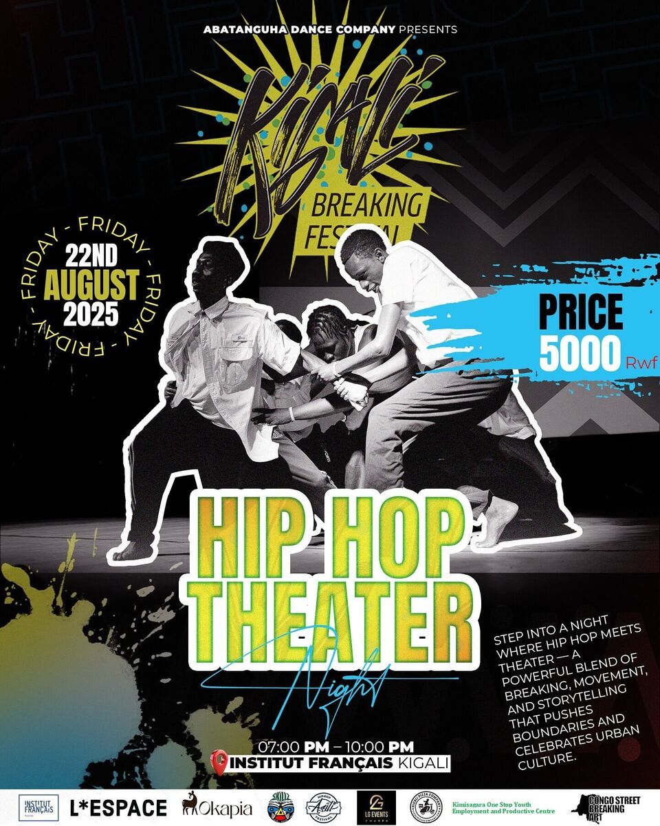 Join us for a spectacular Hip Hop Theatre Night on August 22, 2025, at the renowned Institut Français de Rwanda! This event promises an evening filled with storytelling, movement, rhythm, and raw emotion — where Hip Hop seamlessly blends with theatre on stage. Experience powerful performances that capture the spirit, struggles, and beauty of urban life through dance, spoken word, and creative expression. Celebrate Hip Hop culture in a fresh and inspiring way! 🎤🎭
