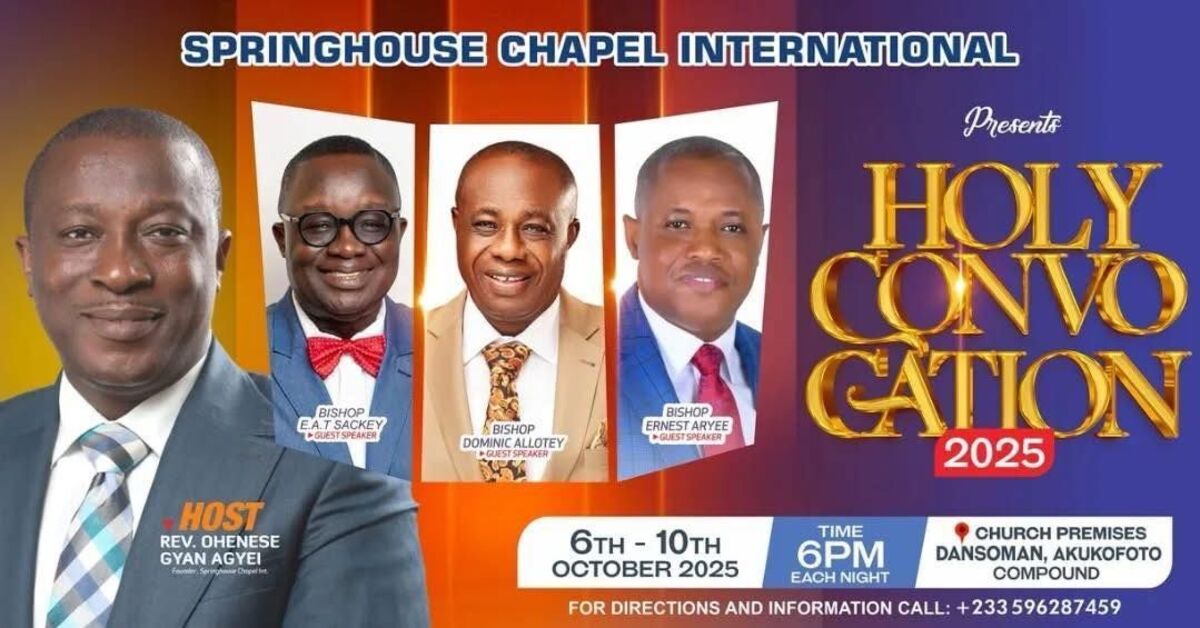 Join us for the sacred and uplifting Holy Convocation 2025 at SpringHouse Chapel International! Experience a powerful gathering filled with worship, prayer, and spiritual renewal. This event is designed to bring the community together to receive blessings and divine inspiration. Expect an atmosphere charged with faith, hope, and divine presence. Come prepared to be transformed and to receive from the Lord! ๐โจ