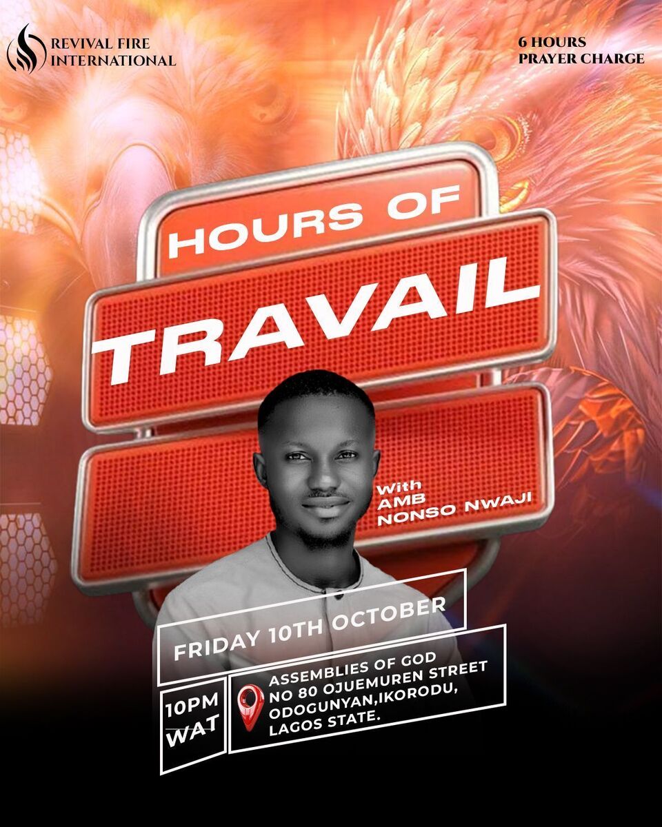 Let’s unite in worship, prayer, and community as we embark on hours of travail for spiritual breakthrough and divine encounters. Don’t miss this impactful gathering—see you there! 🚀🔥