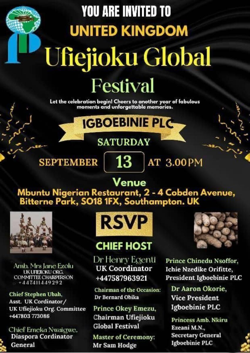 ๐ Join us for the vibrant Ufiejioku Global Festival, a grand celebration bringing together communities from Nigeria and the Diaspora! Experience a rich tapestry of cultural displays, music, dance, and traditional festivities that showcase the vibrant Igbo heritage. This festival promises an exciting blend of entertainment, cultural pride, and unity, making it an unforgettable event for families, friends, and culture enthusiasts. Don't miss the chance to be part of this worldwide celebration that bridges continents and celebrates Igbo traditions with joy and pride! ๐โจ