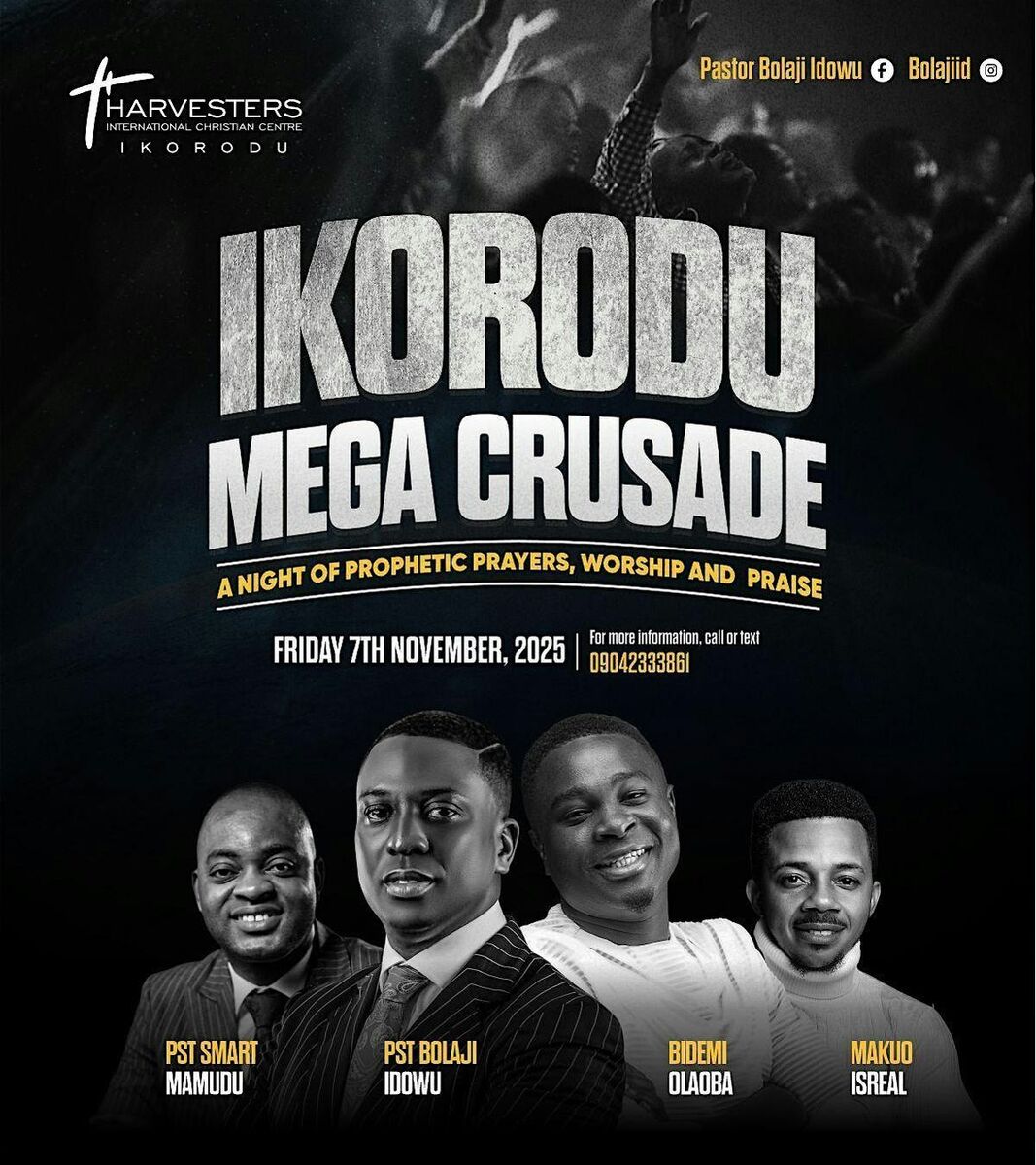 Join us for the highly anticipated IKORODU MEGA CRUSADE at Lagos State University of Science and Technology! Experience a powerful gathering where the heavens open to pour out God's glory. Expect an atmosphere of divine presence, worship, and spiritual breakthrough. This event promises an unforgettable experience of faith, fellowship, and transformation. Come hungry for an outpouring of blessings and be part of a movement that will uplift your spirit and ignite your passion for God. Don't miss this opportunity to encounter His presence in a majestic way! πβ¨π₯