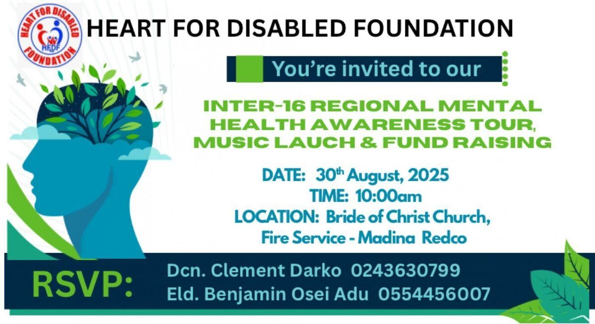 🌟 Join us for a groundbreaking event dedicated to mental health awareness and community empowerment! The Inter-16 Regional Mental Health Awareness Tour & Music Launch is a vital initiative aimed at promoting mental well-being across regions, breaking stigmas, and inspiring hope through captivating music and impactful discussions. Experience an engaging program that features the launch of a powerful new song titled “Anidaso a Ɛboro Sunsuma no so” (Hope Beyond the Shadows), designed to uplift and motivate individuals affected by mental health challenges. 🎶✨
