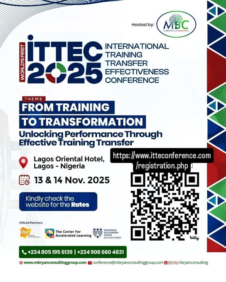 Join us for the International Training Transfer Effectiveness Conference β a must-attend event designed to boost your skills in training transfer strategies! πβ¨ Experience insightful sessions, networking opportunities with industry leaders, and practical workshops that equip you with proven techniques to maximize training impact. Whether you're a trainer, HR professional, or organizational leader, this conference offers valuable knowledge to elevate your effectiveness. Gain fresh perspectives, connect with like-minded professionals, and stay ahead in the dynamic field of training and development. Donβt miss this opportunity to transform your approach and achieve measurable results! ππ₯