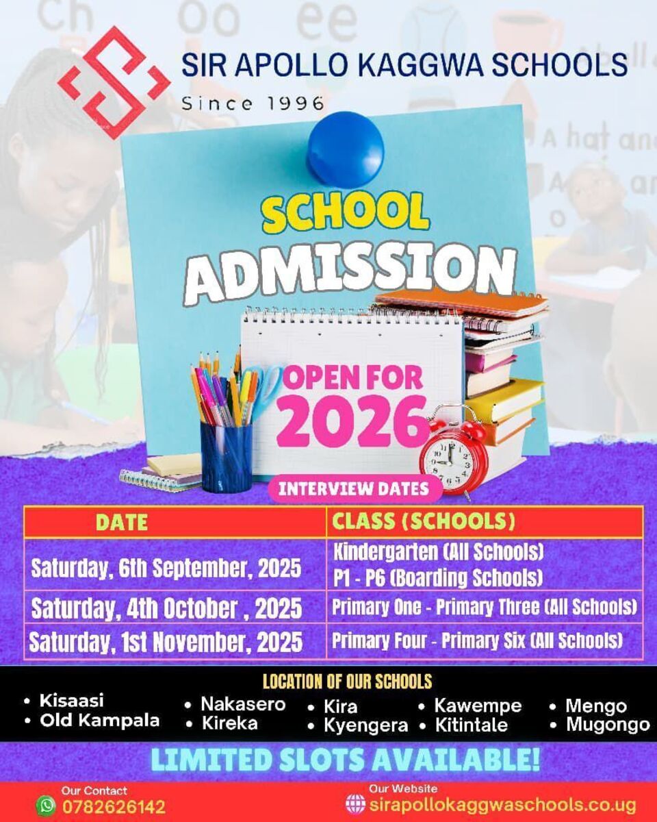 Our event offers a comprehensive overview of the enrollment process, key dates, and what you need to prepare. Whether you're a parent or a guardian, this is your chance to ensure your child's future starts on the right foot with Sir Apollo Kaggwa Primary School-Kisaasi. Secure your spot and take the first step towards academic success! 🌍✨