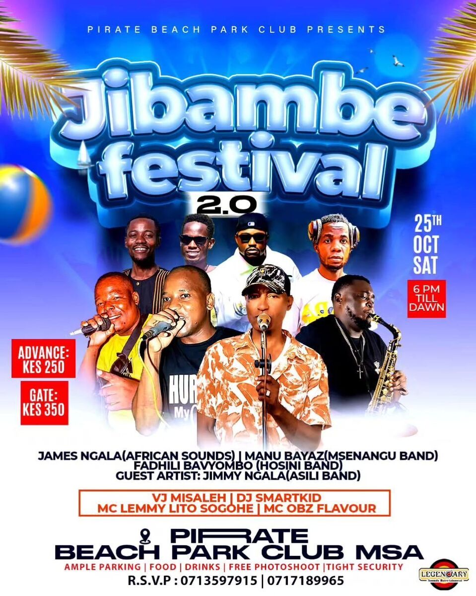 ๐ Get ready for an electrifying celebration at Jibambe Festival Season 2! Experience an unforgettable night filled with vibrant African rhythms, live performances by four incredible bands, and an energetic vibe that will have you dancing till dawn. Featuring sensational acts like New African Sounds (James Ngala), Msenangu Band (Manu Bayaz), Hosini Band (Fadhil Bavyombo), and Asili Band (Jimmy Ngala), this event promises a night of pure entertainment and cultural expression. Join us at Pirates Beach Mombasa for a night of music, fun, and community. Donโt miss out on this epic festival! ๐โจ
