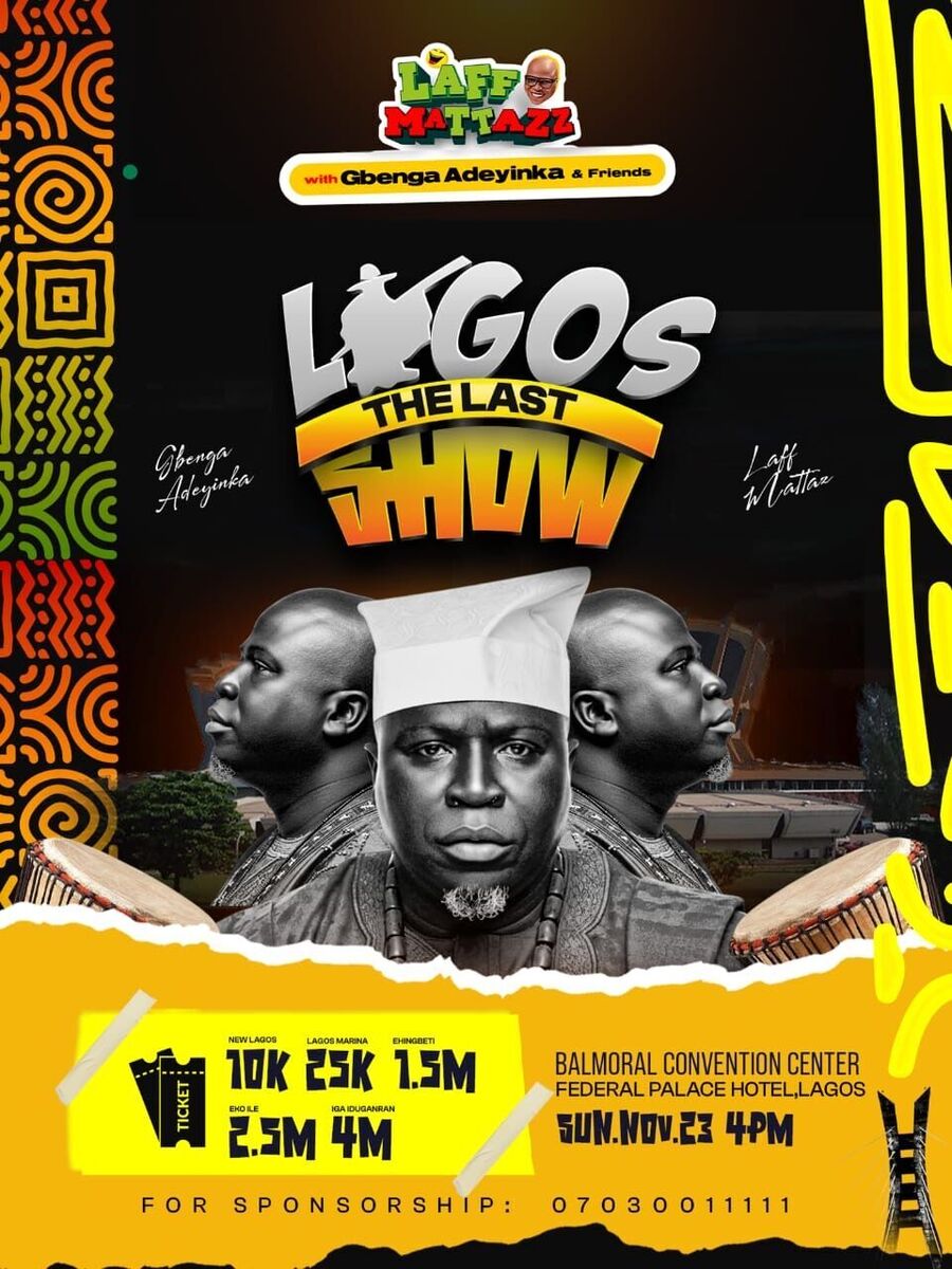 🎉 Get ready for an unforgettable night of laughter, entertainment, and camaraderie at LAFFMATTAZZ! Join Gbenga Adeyinka alongside a lineup of top comedians and artists in the vibrant city of Lagos. This event promises to be a spectacular celebration of comedy, music, and cultural energy, set in the iconic Balmoral Hall at the Federal Palace Hotel. Whether you're a lover of stand-up comedy, a fan of live performances, or simply looking for a fun-filled evening, LAFFMATTAZZ guarantees a night full of joy, surprises, and memorable moments. Don't miss out on this hilarious and lively gathering! 🤩