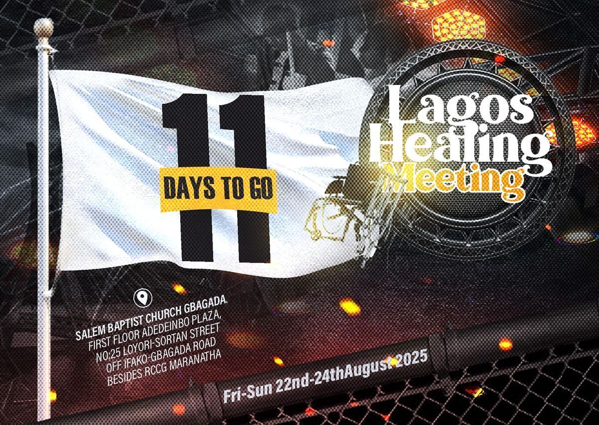 🌟 Lagos Healing Meeting is a divine gathering designed to bring healing, miracles, and spiritual revival to attendees. Over three impactful days, participants will experience powerful ministrations, life-changing miracles, and profound encounters with God's presence. This event is perfect for anyone seeking physical, emotional, and spiritual healing, as well as those hungry for a deeper connection with God. Expect an atmosphere charged with faith, breakthrough, and supernatural encounters that will transform lives. Whether you're in need of healing, deliverance, or simply a fresh touch of God's power, this meeting promises to be a divine invasion where heaven kisses earth! ✨🔥