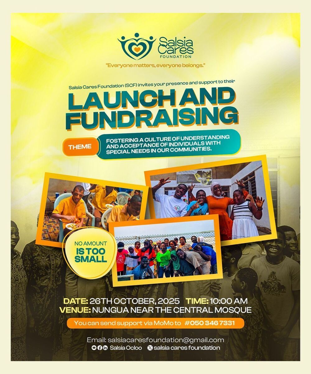 Join us for LAUNCH AND FUNDRAISING at Nungua Coldstore, an inspiring event dedicated to fostering a culture of understanding and acceptance for individuals with special needs. πβ¨ Whether you're passionate about community development, charity work, or supporting inclusive initiatives, this event offers a meaningful platform to connect, contribute, and make a difference. Engage in impactful discussions, network with like-minded individuals, and be part of a movement that promotes compassion and unity. Don't miss this chance to be part of something transformative! ππ€