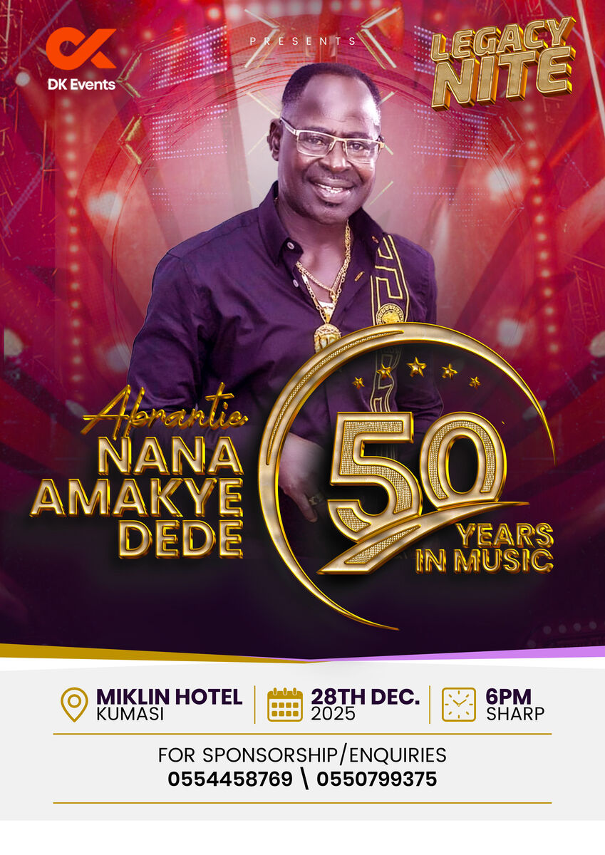 Join us for a historic night of highlife excellence as we celebrate Abrantie Nana Amakye Dede, the “Iron Boy” himself, marking 50 remarkable years in music!
