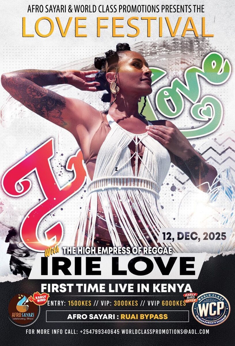 Experience a vibrant celebration of love and unity at the LOVE FESTIVAL🎉! Join us for an unforgettable gathering featuring electrifying performances by Irie Love (Step Up Hit Maker), Redsan, Djboom, Bighi Blaze, Natty Konshanz, and many more talented artists. The event promises an energetic atmosphere filled with music, dance, and positive vibes, all set against the lively backdrop of Afro Sayari in Nairobi. Come celebrate love in style, dance the night away, and make memories that last a lifetime! 🎶💃🕺