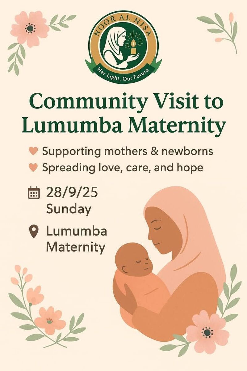 πΈ Join us for the Lumumba Martenity Visit as Noor Al Nisa CBO Community Initiative embarks on a heartfelt journey to support maternal health. This event offers an inspiring opportunity to engage with community efforts aimed at ensuring every mother receives care, dignity, and support during childbirth. Discover stories of hope, witness community bonding, and be part of a movement dedicated to building a healthier society for mothers and children. π€π