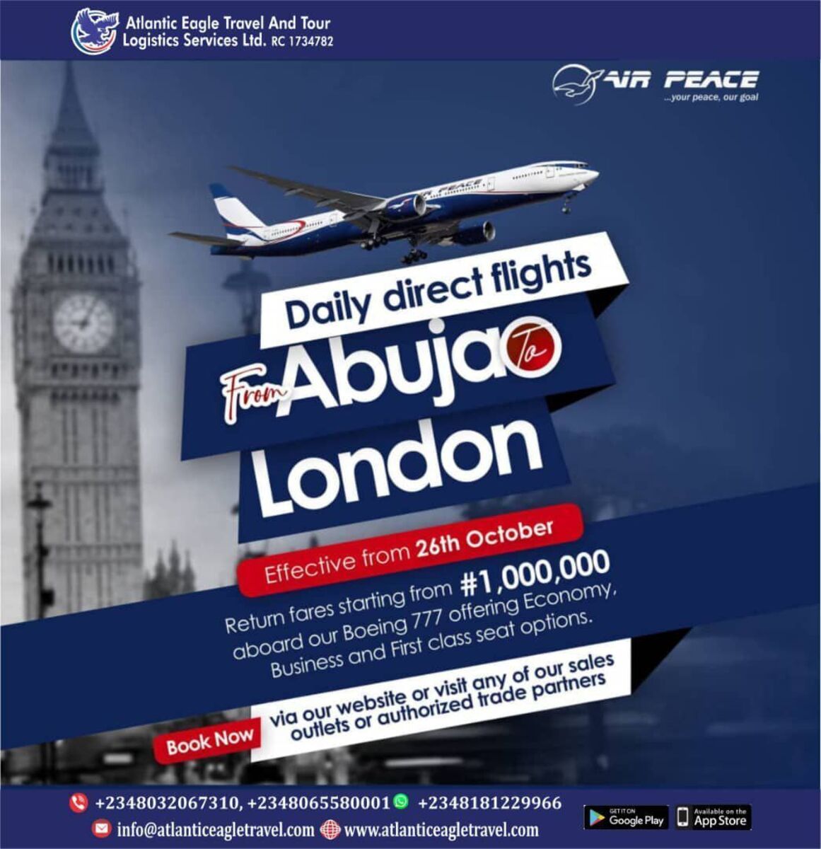 ✈️ Experience a groundbreaking direct international flight from Nigeria to London with Airpeace! Starting on 26th October 2025, this historic service links Abuja (ABV) to London's major airports—Heathrow (LHR) and Gatwick (LGW)—making travel more accessible, efficient, and cost-effective.