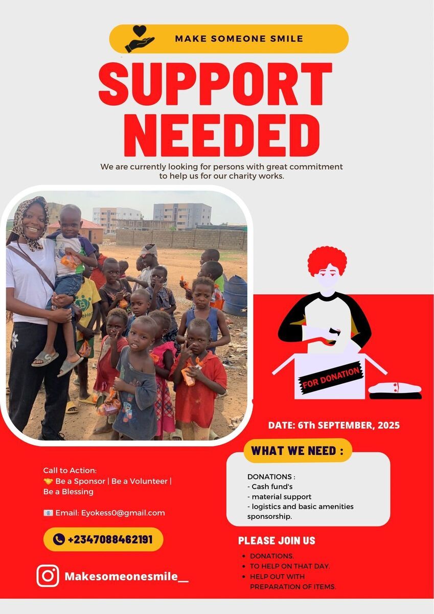 Join us for the MAKESOMEONESMILE CHARITY EVENT β a heartfelt gathering dedicated to supporting children in need. This event is a perfect opportunity to come together as a community, have fun, and make a meaningful impact. Enjoy inspiring activities, connect with like-minded individuals, and be part of a noble cause that aims to bring smiles to the faces of many kids. ππ€