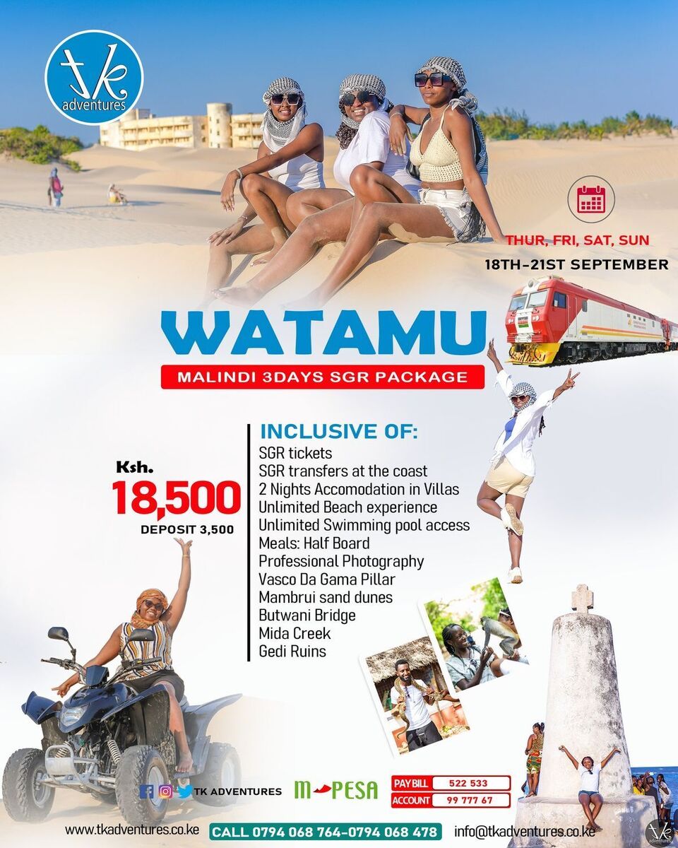Embark on the ultimate Malindi & Watamu Tour experience! Enjoy a 3-day, 2-night package featuring luxurious accommodation, scenic tours, and cultural excursions along the stunning Kenyan coast. Discover the pristine beaches of Watamu, explore the historic Vasco Da Gama Pillar, and marvel at the breathtaking sand dunes of Mambrui. This all-inclusive package offers everything from comfortable villa stays to Half Board meals, making it perfect for travelers seeking both relaxation and adventure. ๐ด๐