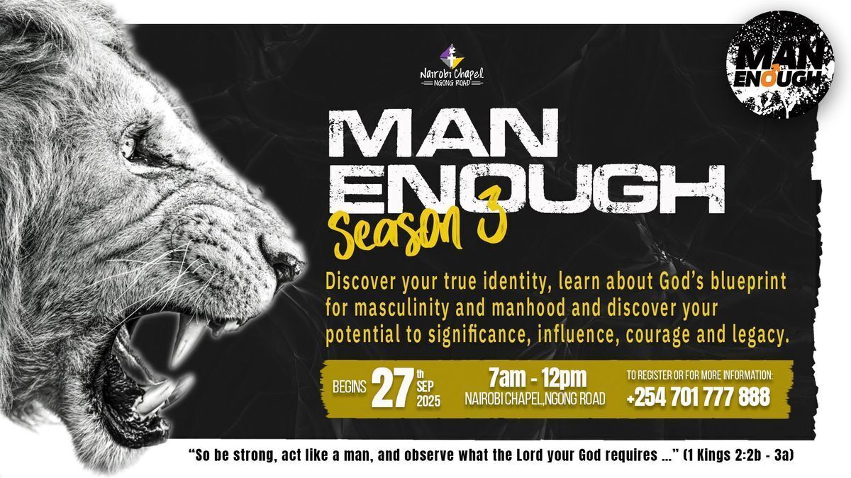 🔥 Man Enough Season III 2025 Launch is more than just an event—it's a movement challenging men to explore and redefine what it truly means to be a man in today’s world. Hosted at the iconic Nairobi Chapel on Ngong Road, this interactive and experiential platform invites men of all backgrounds to come together, engage in meaningful conversations, share their stories, and learn from one another about what manhood really means. Whether you're seeking personal growth, connection, or a fresh perspective, this launch sets the stage for a powerful season of transformation. Join us and be part of a community committed to growth and authenticity. 💪🌍