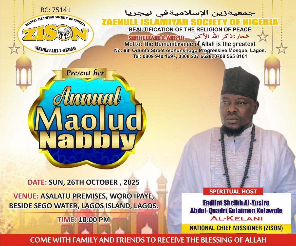 Come one, come all to partake in this blessed gathering at Princess Street, Lagos Island. Engage in devotional activities, listen to inspiring sermons, and connect with fellow attendees in a warm, welcoming environment. Don't miss this opportunity to deepen your faith and celebrate our beloved Prophet. ππ