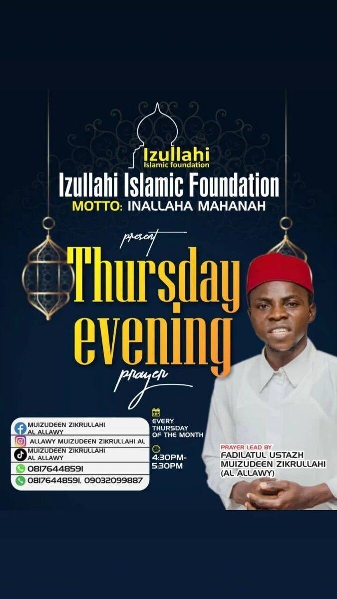 Join us for the blessed occasion of Maolud Nabiyi / Special Prayer, a spiritual gathering dedicated to prayer and reflection. This event offers a wonderful opportunity for community members to come together, seek blessings, and partake in religious observance. The event is hosted by the Izullahi Islamic Foundation, renowned for their commitment to faith and community service. Attendees can look forward to a meaningful session filled with prayer, spiritual upliftment, and fellowship. Don't miss this chance to be part of a soulful experience that nurtures faith and unity. โจ๐