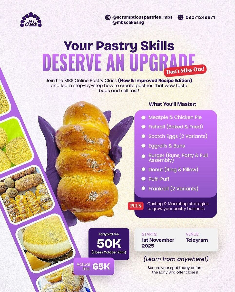 πͺ Participants will learn essential techniques, make payment details are provided, and access links will be shared upon proof of payment. Don't miss this delicious opportunity to enhance your baking skills!