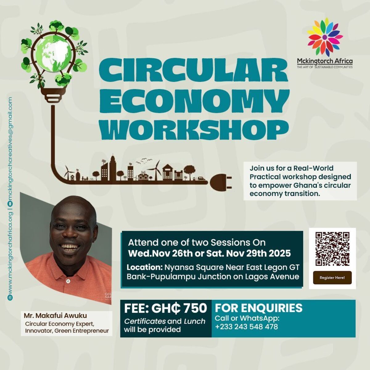 🌍 Join the Green Revolution! Discover innovative ways to transform waste into wealth at the Mckingtorch Africa Circular Economy Workshop. This engaging session is designed for environmental enthusiasts, entrepreneurs, and anyone passionate about sustainable development. Led by Circular Economy expert Mr. Makafui Awuku, you'll learn practical skills that are driving global green finance and addressing Ghana’s environmental challenges.