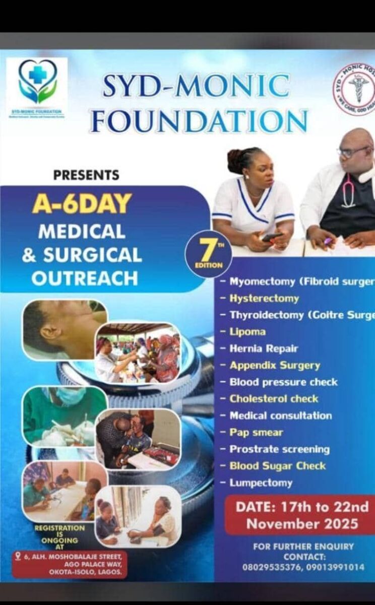 Opportunity is gold and a precious gift of nature endowed on earth for man's use. Syd-Monic Hospital invites everyone to participate in their annual Medical and Surgical Outreach. This impactful event aims to provide medical services, treatment, and surgeries at a lower cost, reaching those who may not afford standard healthcare. It’s more than just a health program—it's a gift to humanity, offering healing and hope. Join us to make a difference, be part of healing the community, and perhaps even be a vessel of divine healing!