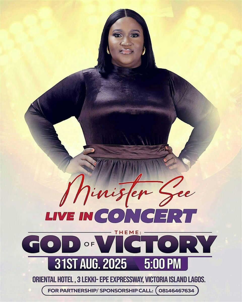 πΆ Experience an unforgettable night of worship and praise! Join Minister See as he takes the stage for a soul-stirring live concert. This is a divine gathering filled with powerful music, heartfelt adoration, and spiritual upliftment. Whether you're a long-time follower or new to his ministry, this event promises an epic night of inspiration and fellowship. Don't miss this opportunity to witness Minister See perform live in the majestic setting of Lagos Oriental Hotel. Bring your friends and family for an evening that will leave you renewed and blessed! β¨π