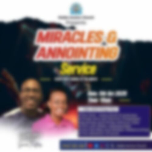 Join us for a powerful spiritual experience at our Miracles and Anointing Service. Expect a divine encounter filled with healing, breakthroughs, and fresh anointing from God. This special gathering is designed to uplift, restore, and empower your faith. Invite your family and friends to partake in this blessed event and witness miracles happen! 🙌✨
