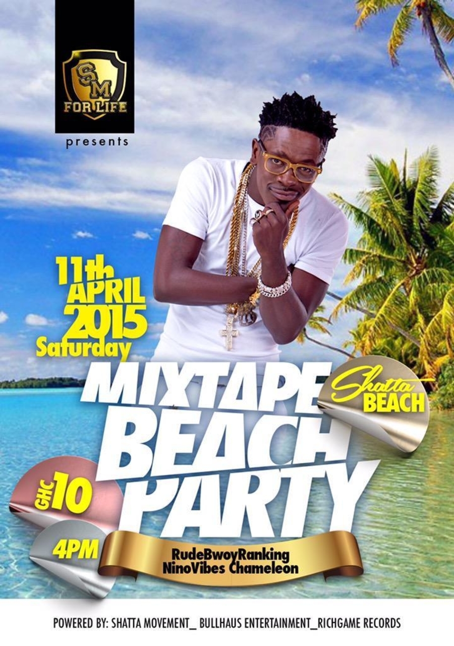 Party people you know dont want to be told, Shatta Movement is moving to the beach and you know anywhere Shatta Wale goes there is nothing but pure fireworks and energy. You dont want to miss this beach party...its going to be one of the badest shows in Ghana for 2015. Be there people #SM4LYF