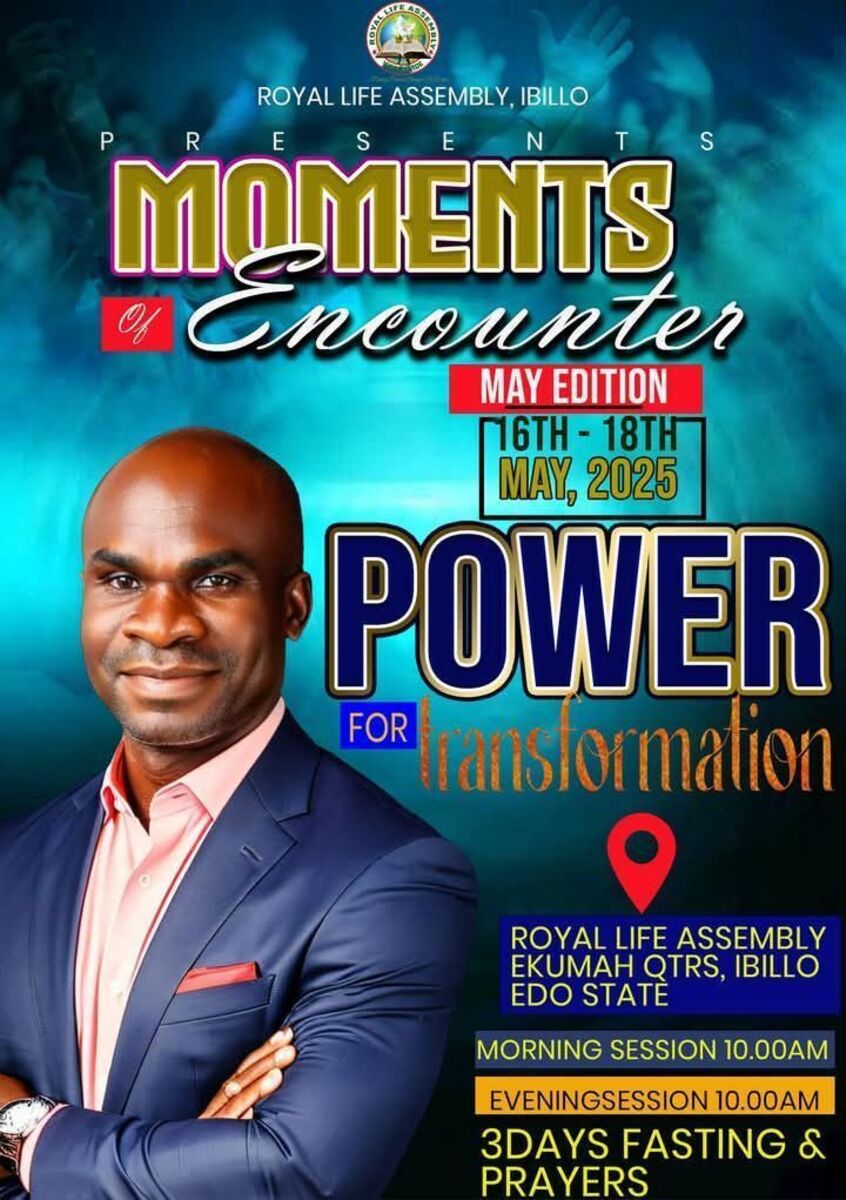 MOMENT OF ENCOUNTER is an inspiring three-day event focused on fasting and prayer, designed to uplift your spirit and deepen your faith. Join us for a transformative experience filled with spiritual growth, community, and powerful moments of connection with God.