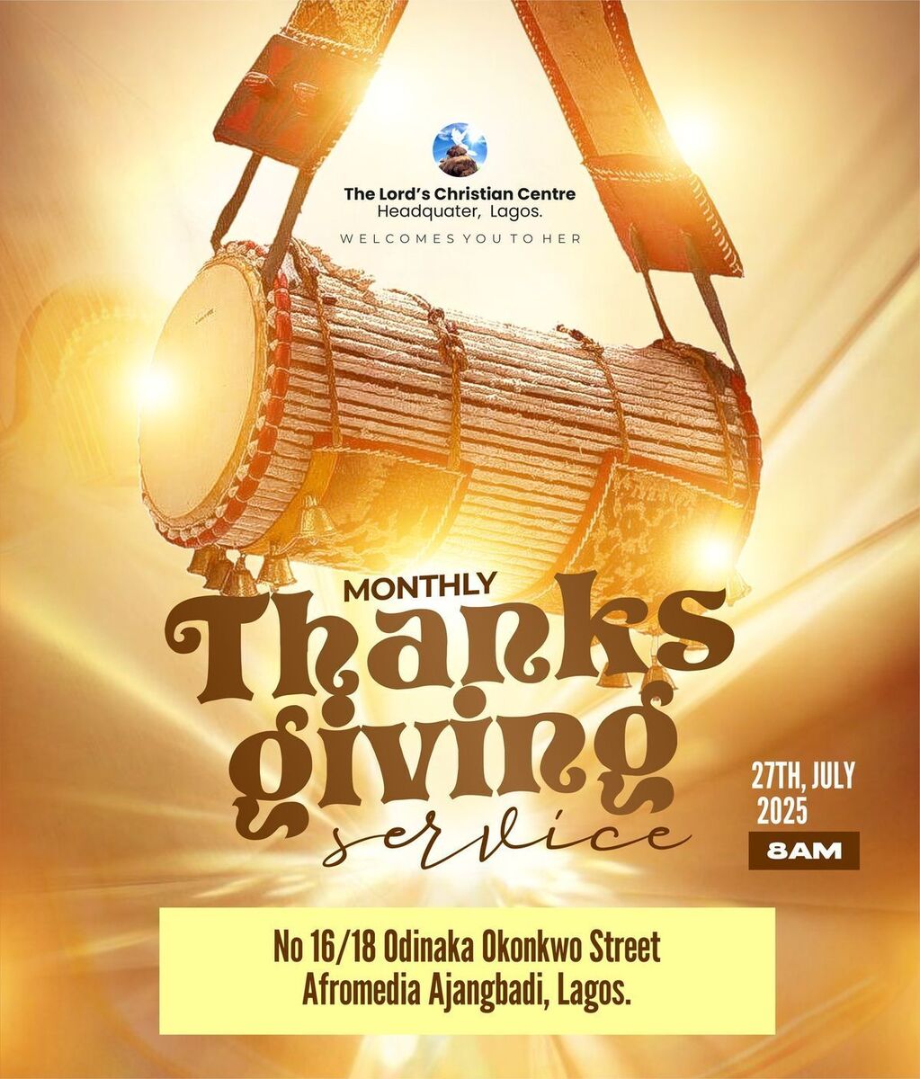 πCelebrate Gratitude and Unity! Join us for our special Monthly Thanksgiving Service at the serene 18 Odinaka Okonkwo Street, Afromedia, Ajangbadi, Lagos. This heartfelt gathering is dedicated to counting blessings, giving thanks, and fostering community spirit. Whether you're looking to reflect, connect, or simply express gratitude, this event is your perfect opportunity. Come with an open heart and let's give thanks together! ππ