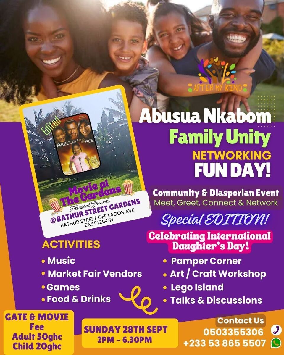 Join us for our special edition of the Abusua Nkabom Family Unity FUN DAY! as we celebrateInternational Daughters Day! this month of September.