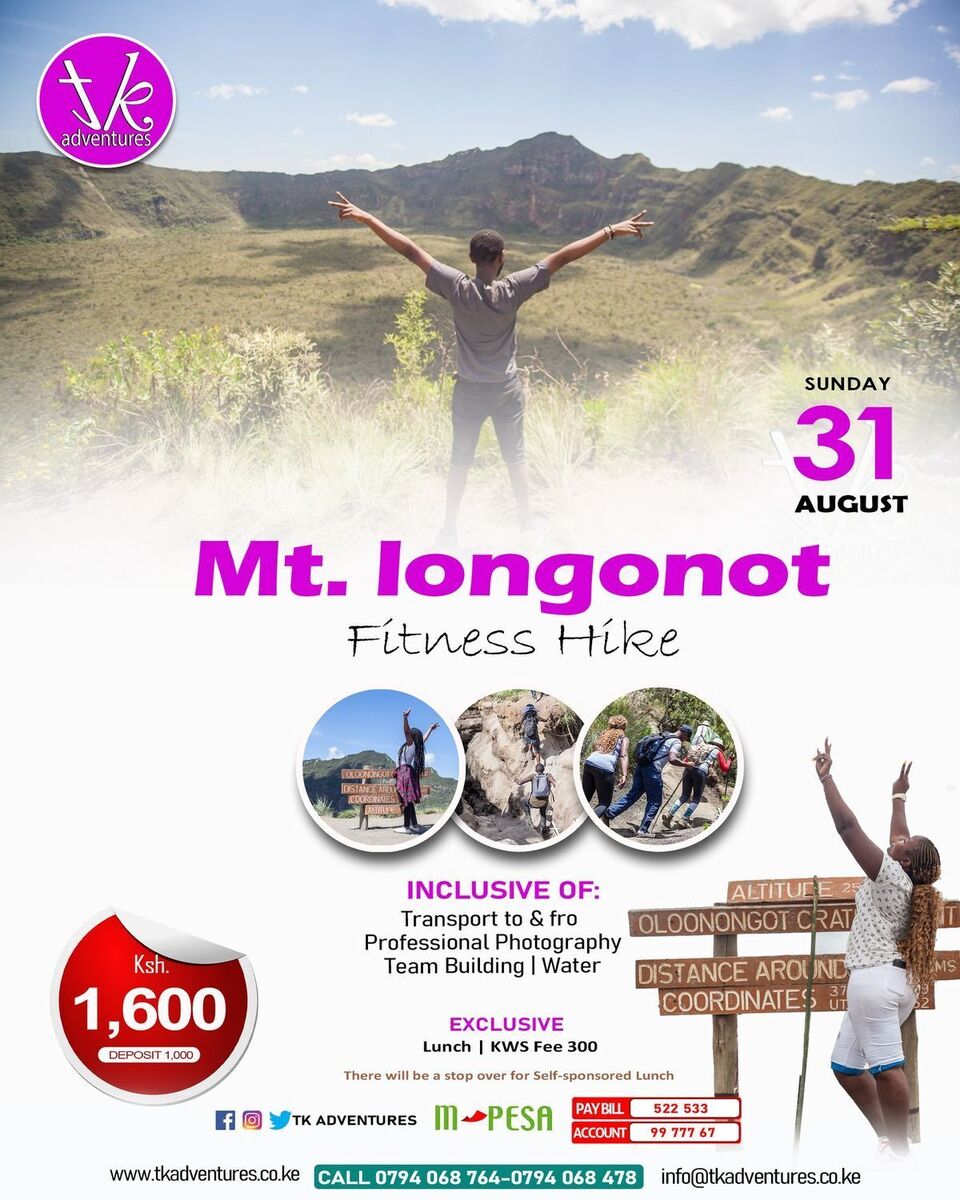 🌄 Embark on an exhilarating adventure to Mount Longonot! Join fellow explorers for a scenic and challenging hike up one of Kenya's most iconic volcanoes. This event offers an excellent opportunity to enjoy nature, get some exercise, and connect with like-minded outdoor enthusiasts. Whether you're a seasoned hiker or a first-timer, this experience promises breathtaking views, fresh air, and memorable moments. Don't miss out on this limited-time offer! 🚶♂️🚶♀️