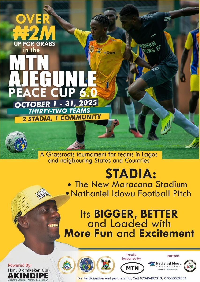 π₯ Join the excitement at the MTN-Ajegunle Peace Cup 6.0! This vibrant football tournament celebrates grassroots talent and unites communities through the beautiful game. Experience thrilling matches, community spirit, and sportsmanship in the heart of Ajegunle, Lagos. Whether you're a passionate fan or just looking to enjoy a lively sporting event, this cup promises an unforgettable day filled with energy, camaraderie, and local pride. Don't miss out on supporting emerging football stars and being part of this exciting grassroots initiative! β½π