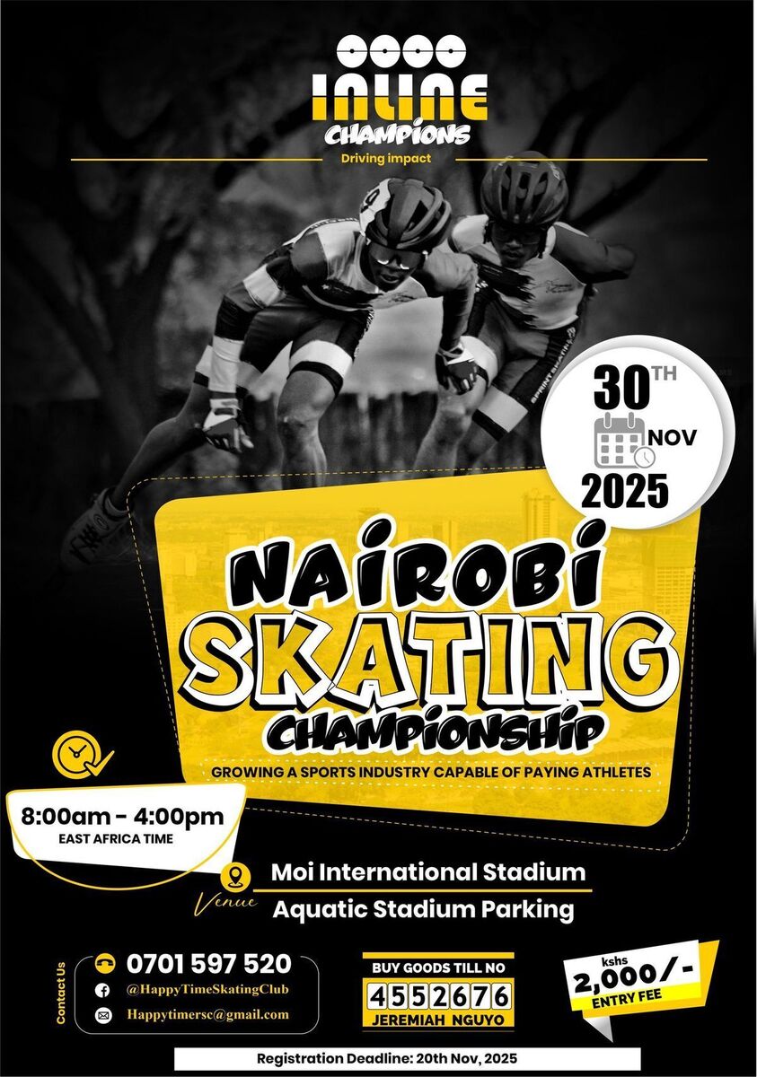 Get ready for the thrilling Nairobi Skating Championship at the iconic Moi International Stadium - Kasarani! ๐นโจ Join passionate skaters from all over Nairobi as they showcase their skills in a vibrant and energetic environment. Whether you're an enthusiast, a supporter, or just looking for an exciting day out, this event promises fun, competition, and community spirit. Experience the adrenaline, enjoy live performances, and witness the rise of Kenya's skating talents in a celebration of sport and culture. Don't miss out on this chance to be part of Nairobi's dynamic sports scene! ๐๐ฅ