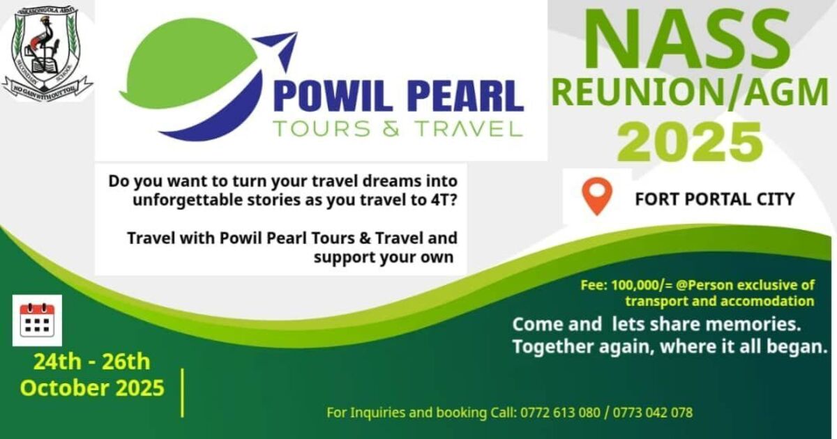 Join us for the NASS Annual AGM Western Region Retreat in the beautiful area of Fort Portal! 🎉 This exciting event brings together alumni, OBs, and OGs of NASS for a memorable gathering filled with networking, fun activities, and meaningful interactions. Hosted by Powil Pearl Tour and Travel, the retreat promises an engaging experience where you can connect with fellow alumni, enjoy the scenic surroundings, and participate in lively discussions and entertainment. Whether you're looking to relax, network, or celebrate, this retreat offers it all in a vibrant and welcoming atmosphere. Don't miss out on this opportunity to grow together and make unforgettable memories! 🌟