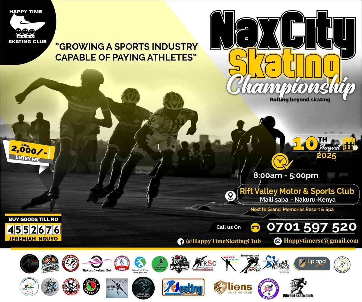 Get ready for the exciting NAX CITY SKATING CHAMPIONSHIP! ๐ผโจ This vibrant sporting event is designed to showcase the talents of skaters from across the region, fostering growth in the sport and encouraging healthy competition. Participants will compete for monetary rewards, making it a perfect blend of entertainment and opportunity. Whether you're a skating enthusiast or simply looking for a fun day out, this championship promises an engaging experience filled with energy, skill, and community spirit. Don't miss the chance to witness thrilling performances at the renowned Rift Valley Motor and Sports Club. Join us for a day packed with action, excitement, and unforgettable memories! ๐๐ฅ
