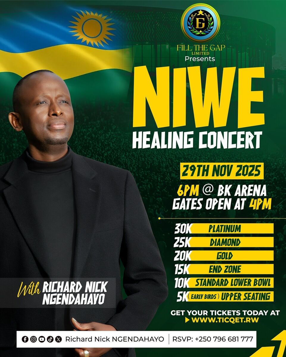 Join us for the Niwe Healing Concert, a powerful event designed to uplift spirits through soul-stirring gospel music and heartfelt worship. Featuring renowned Rwandan gospel artist Richard Nick Ngendahayo, who returns after over a decade in the USA, this concert promises an inspiring evening of faith, healing, and community connection.