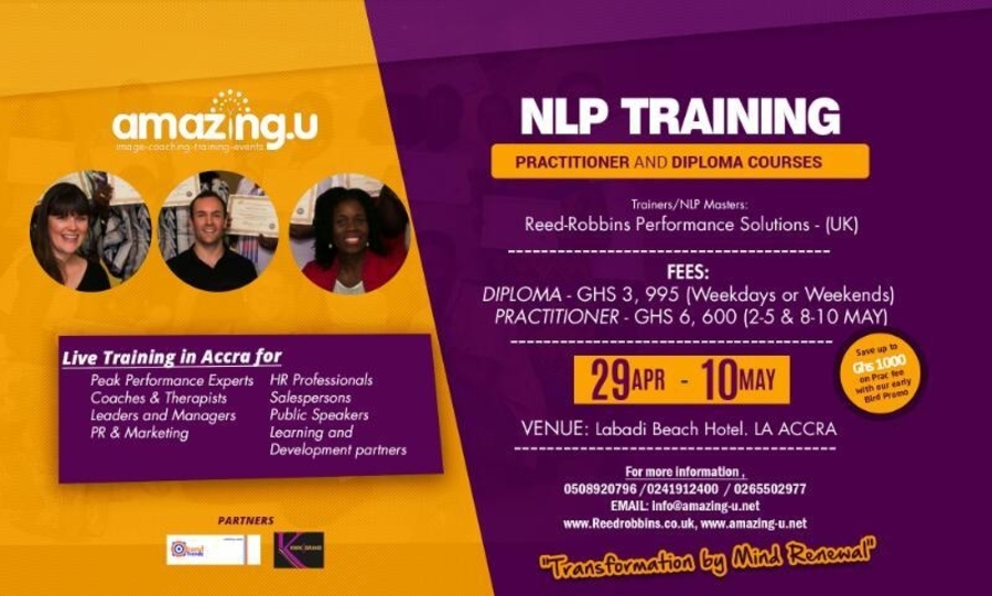 After a succesful training of 19 delegates in Accra during January 2017, Amazing-U in collaboration with UK based Reed-Robbins Performance Solutions are bringing another fantastic opportunity for people in Africa to discover powerful insights into how the mind works and learn secrets to success enjoyed by those in other parts of the world.