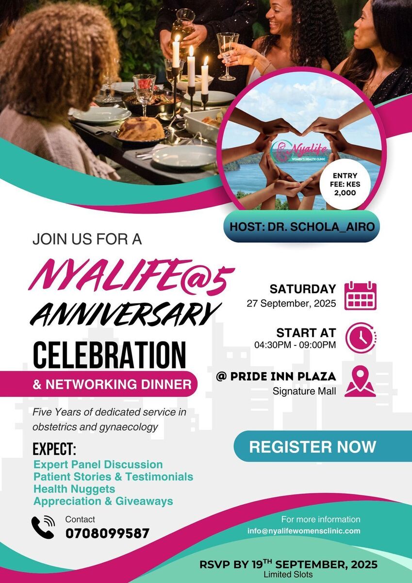 π Join us in celebrating a milestone! Nyalife Womenβs Health Clinic proudly marks 5 years of dedicated service in Obstetrics and Gynaecology. This special evening is not just a celebration but a gathering of community, patients, partners, and supporters who have been part of this impactful journey.