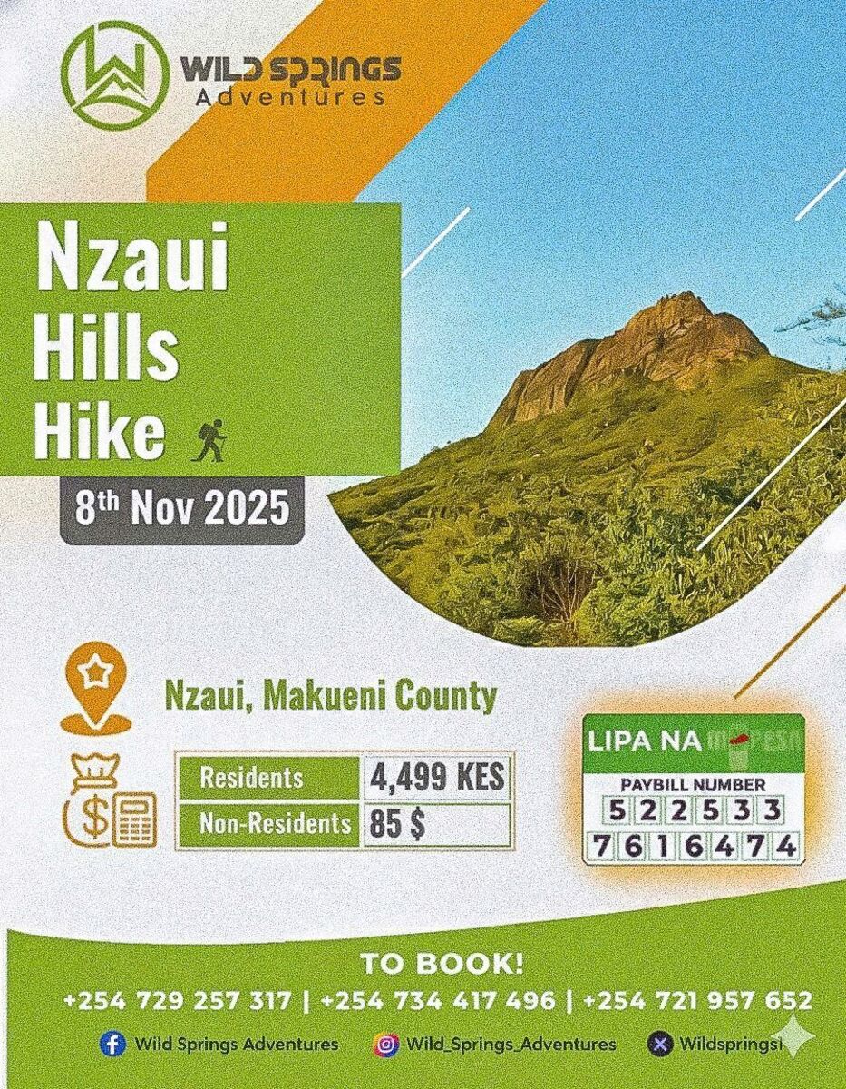 ๐ Embark on an exhilarating adventure! Join Wild Springs Adventures for the NZAUI HILLS TREKKING TOUR ๐ฅพ. Conquer one of Africa's tallest rocks and immerse yourself in a vital water tower ecosystem nestled in Makueni County. Whether you're a seasoned trekker or a curious explorer, this journey promises breathtaking panoramic views, a chance to connect with nature, and contribute to water conservation efforts. Pack your gear and get ready for a memorable day of hiking, discovery, and fun! ๐ฟ๐