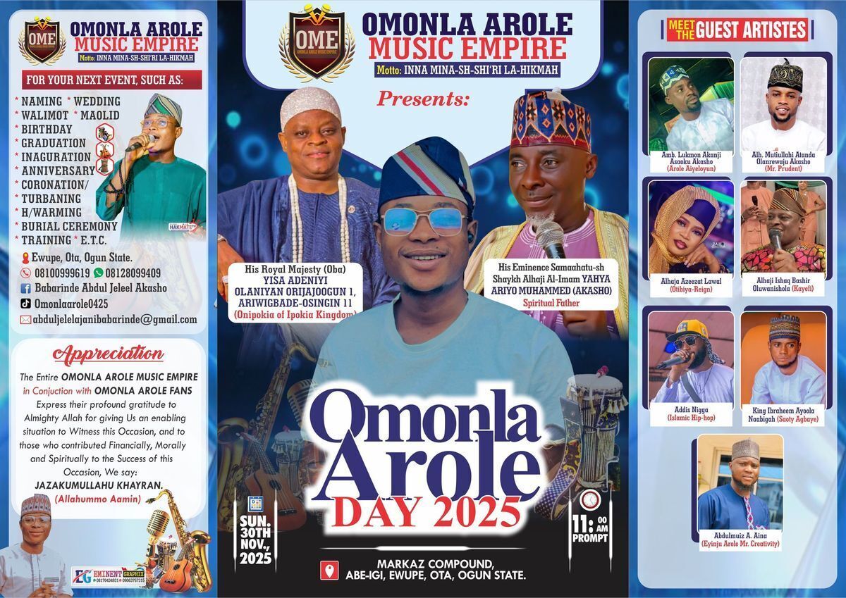 Join us in celebrating the remarkable Omonla Arole Day 2025 v.1! This special event is a heartfelt tribute to a revered figure, with inspiring messages and community unity. Expect a warm atmosphere filled with cultural pride, heartfelt speeches, and memorable moments. ๐โจ Whether you're a close family member, friend, or community supporter, this event offers a wholesome experience to honor tradition and togetherness. Don't miss the chance to be part of a meaningful celebration that brings people together in joy and gratitude. ๐ฅณ๐