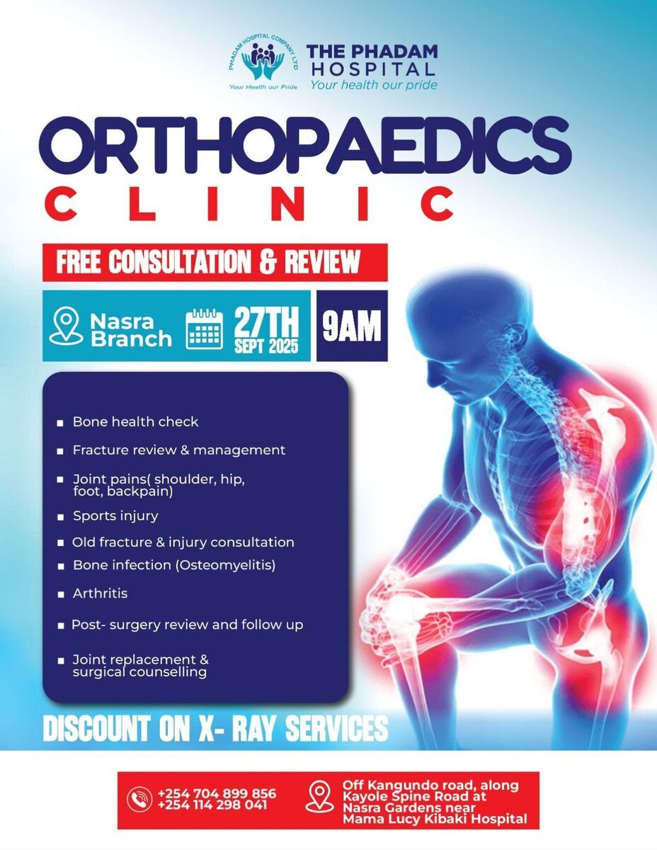 Join us for our Orthopedic Clinic on 27th September 2025 at Phadam Hospital – Nasra Branch. Our expert team offers accurate diagnosis, advanced treatments, and personalized care tailored to your orthopedic needs. Whether you're dealing with persistent joint pain, bone health concerns, or arthritis, this event is your step towards relief and improved mobility.