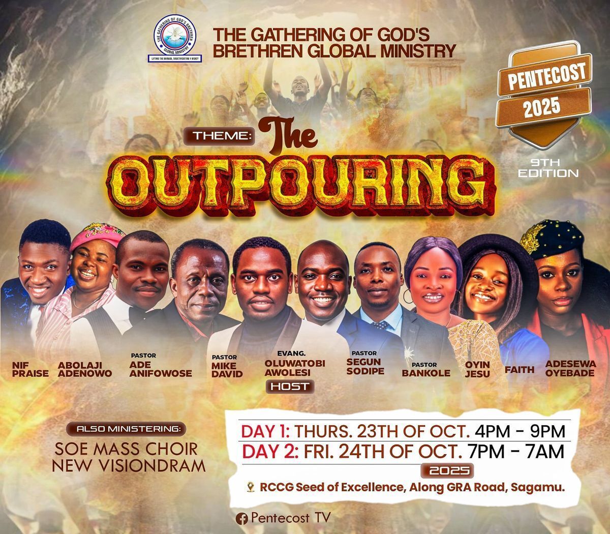 🌊 OUTPOURING is a vibrant spiritual gathering designed to inspire and uplift the youth community in Sagamu. Join us for an evening of powerful worship, heartfelt prayers, and community bonding. This event promises an atmosphere filled with faith, hope, and renewal, perfect for young souls seeking a spiritual boost. Whether you're a believer or curious, come experience an event that aims to ignite your spirit and connect you with like-minded individuals. Don't miss out on this transformative experience! ✨🙏
