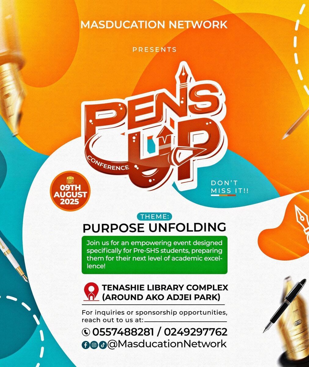You're Invited to join the PENS UP CONFERENCE, a special event tailored exclusively for JHS and Pre-SHS students! This inspiring gathering aims to help young minds discover their purpose, unlock potential, and unleash greatness. π