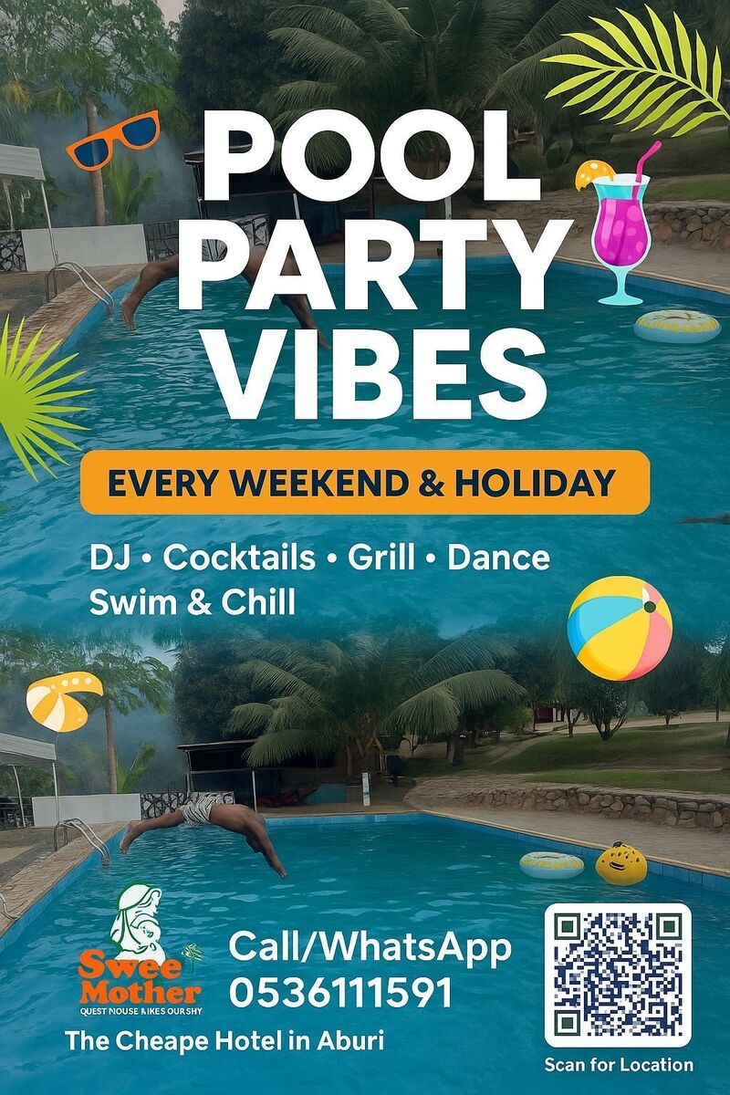 🎉 Dive into the ultimate summer fun at our Pool Party! Enjoy a vibrant atmosphere with music, great drinks, and refreshing pools. Perfect for friends, family, and anyone looking to beat the heat in style. Whether you're lounging poolside or dancing the day away, this event promises unforgettable memories. Don't miss out on the hottest pool bash in Accra! 🌞🏊♂️🎶