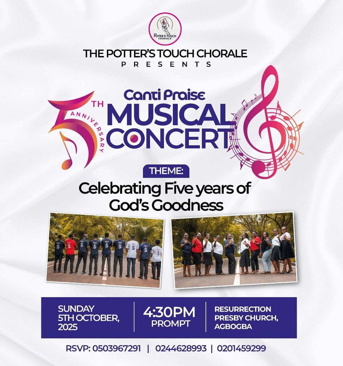 Potter’s Touch Chorale (PTC) joyfully invites you to the climax of their 5th Anniversary Celebration! 🎶